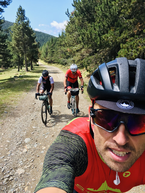 Lluvia casi todo el día y las partes altas de las montañas muy tapadas así que nos montamos en el 4x4 y nos alejamos las nubes. Dejamos el coche en La Seu d'Urgell y iniciamos la marcha subiendo al Coll de la Trava y gozando el asfalto recién puesto. Bici va sola por aquí y además, nada que envidiar a los puertos andorranos, bueno para mi más bonito. Una carretera super tranquila con zonas boscosas, zonas abiertas y un % que permite ir hablando con el compañero. Si estuviéramos entrenando otro gallo cantaría jaja, pero hoy toca paz y arreglar el mundo con esas charlas interminables.