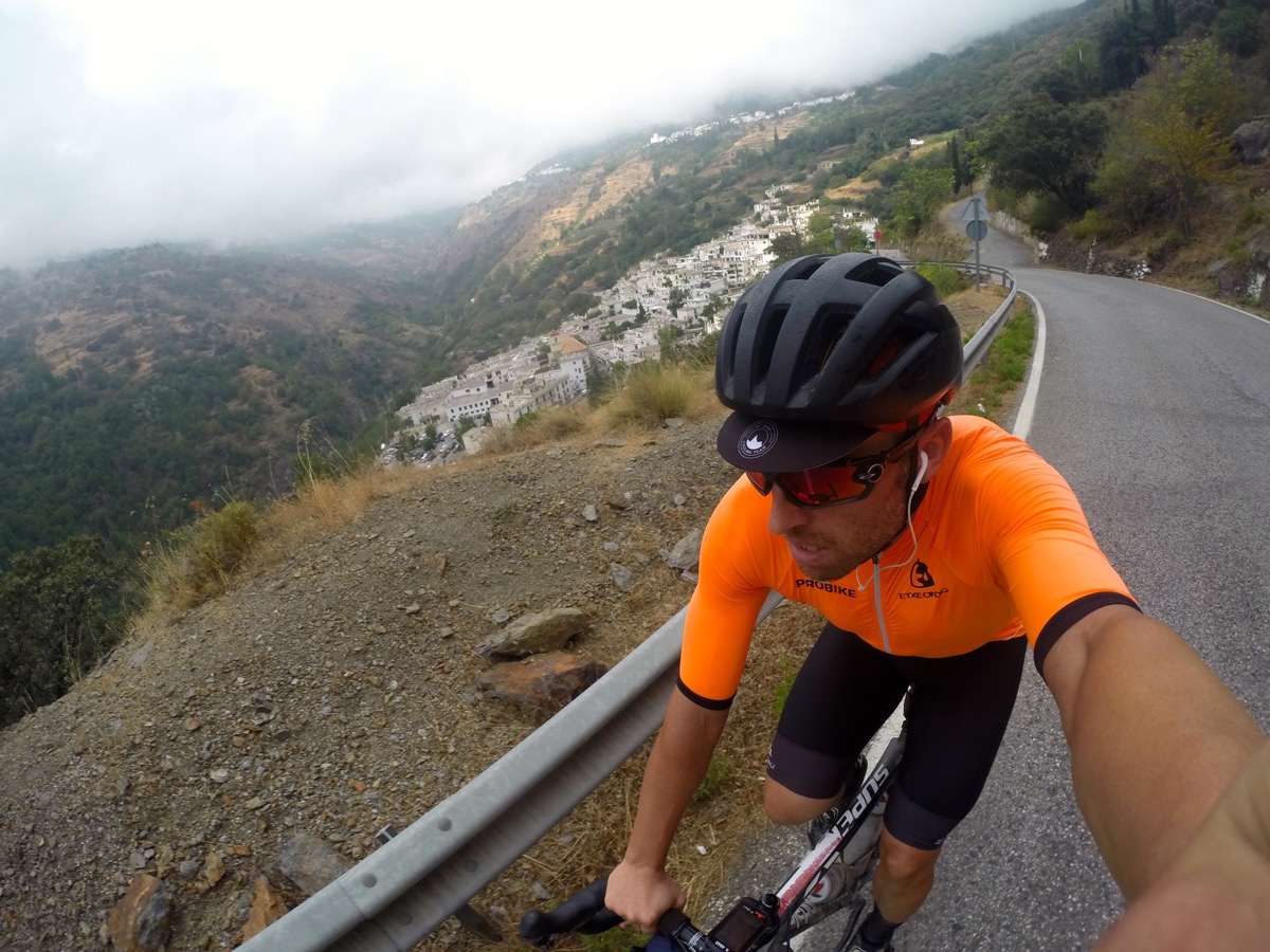 Pues la idea era quedarme aquí a dormir por que leí que hay una pista que enlaza desde aquí con otra que viene de Trevélez. De hecho, parece ser que esta es la subida “común” al Veleta-Mulhacén primero por carrertera tras llegar a Capileira y luego pista, pero como no me quería quedar con las ganas de pasar por Trevélez y dado que aún tenía tiempo, pues hago un 2x1. Me paro a comer un bocadillo buenísimo de jamón en Pampaneira y luego sigo dando pedales hasta Treveléz donde he conseguido un alojamiento.