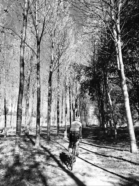 Como decía en el vídeo, inicio más fresquito y boscoso que el de ayer, terreno algo más quebrado, bueno, mucho más. Muchos repechitos con curvas a un lado y en definitiva, más entretenido y distraído que el de las largas rectas de ayer.