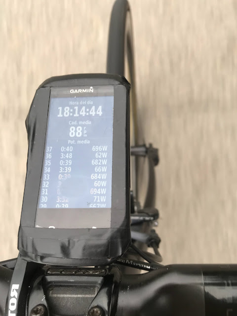 Una lástima porque hasta ahí, la verdad es que las piernas tiraban y fui sacando todas las series en tramos llenos con repechos, alguna más en subida, pero en general apretando los dientes, salieron todas. 90km con 950m+ a los que luego sumaría 1h de rodillo el viernes para soltar piernas ya que tenía idea de hacer un buen combo el fin de semana.
